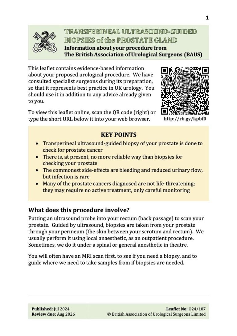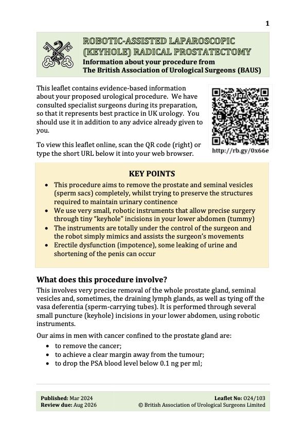 This page provides useful questionnaires and patient information leaflets from the British Asssociation of Urological Surgeons on common prostate procedures.
